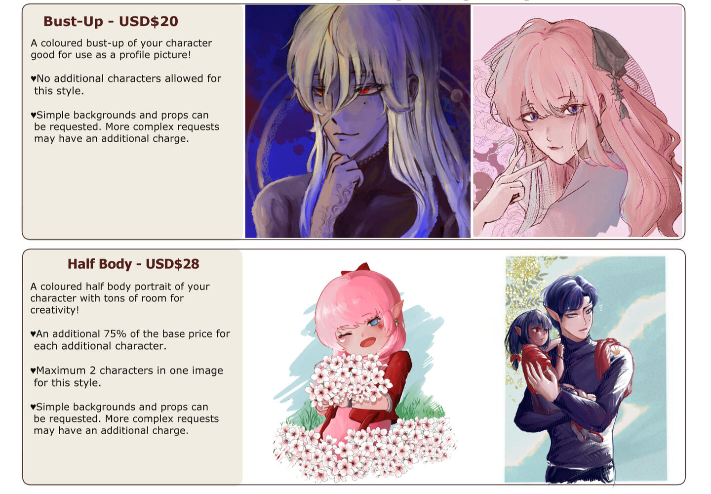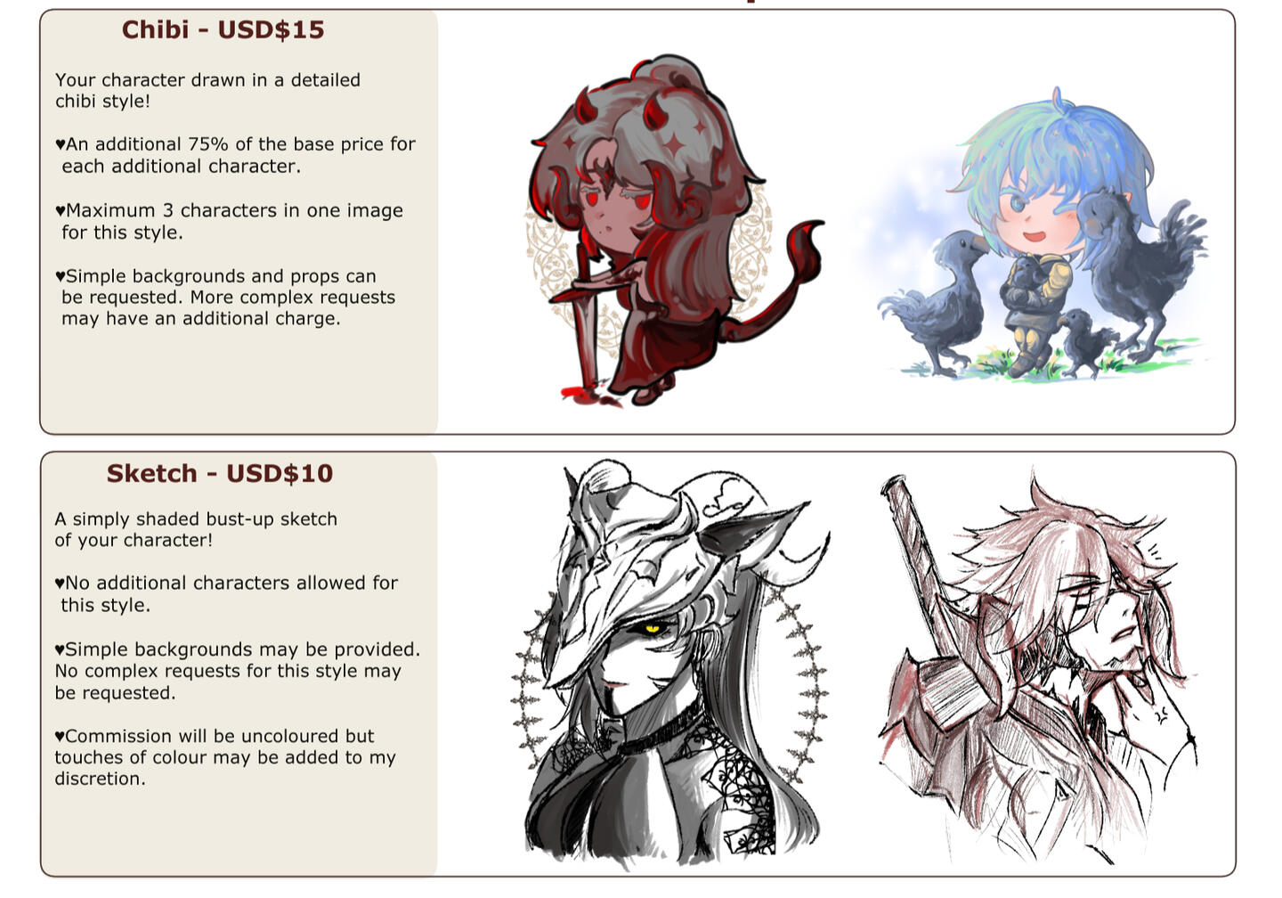 Illustrations I drew in my free time, including pieces drawn for friends and others